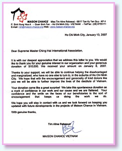 “幸运之屋”既不是避难所,也不是医院,而是一处具有一些设备的简单住所,最重要的是,可以为残障市民提供护理服务与教育训练。其长期目标是,协助这些受惠者学得专业技艺,使他们能赚钱养活自己,并顺利融入社会。经过多年的发展,“幸运之屋”已经成为国际性组织,在悠乐、法国、瑞士、美国和比利时都设有分支机构。 在得知艼的无私奉献后,清海无上师于黄金4年(2007年)元月捐赠了一万美元给“幸运之屋”,以协助他们服务更多有需要的儿童和成人。在感谢函中,雷博德小姐表达了对清海无上师的感激:“谨以最深的感谢致函给您,感谢您对我们组织的真诚关心,以及您慷慨捐赠的一万美元。您的捐款给了我们一个大惊喜!我们视这份自发性的捐款是认同我们工作和理念的表征,令我们受宠若惊。”