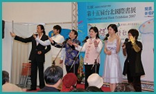 【台北讯】第15届台北国际书展于黄金4年(2007年)元月30日至2月4日在台北世贸展览中心盛大举行,清海无上师世界会出版公司再次与会参展,与民众广结善缘。 为庆祝师父的中文版诗集相继问世,同修们在2月2日精心策划了“清海无上师的圣爱诗心--蝴蝶梦诗歌剧场”活动,以诗歌吟诵方式诠释师父诗集中一首首感人的诗篇,同时播放师父的诗歌专辑《夜梦》及《超越时空》DVD。整场演出获得来宾热烈的掌声,并有许多人感动得热泪盈眶。国立台北艺术大学戏剧学院钟明德院长在观赏之后表示,无上师的诗歌令他非常陶醉,他说:“无上师的诗中呈现出关心和真爱,这正是这个时代最需要的。今天感到非常荣幸,感觉无上师在加持大家,希望有机会和大家一起努力,更了解师父要带领大家去的地方。”