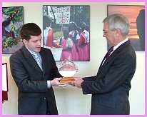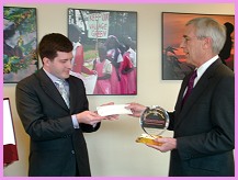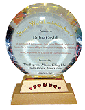 黄金4年(2007年)2月12日,维吉尼亚小中心的同修前往维吉尼亚州的阿灵顿(Arlington),将“全球优秀领导奖”颁给珍.古德博士(Dr. Jane Goodall),以表彰她杰出的成就与启迪人心的领导。同修除了致赠奖牌外,也献上师父的贺函和一万美元支票给古德博士的非营利慈善组织--“国际珍古德教育及保育协会”(Jane Goodall Institute for Wildlife Research, Education and Conservation)。 协会入口处数不清的古德博士工作照片和黑猩猩铜像,十分令人着迷;它们代表真诚、奉献和人道博爱的精神。如同本刊在第174期所介绍的,古德博士是全球研究黑猩猩的先驱权威,她的研究改变了科学界对于人类与动物之间关系的观点。她最近出版的著作《希望的丰收:用心饮食指南》(Harvest for Hope: A Guide to Mindful Eating)也宣扬素食主义,倡导改变人类生产及消耗粮食的方式,并为我们的子孙和地球的未来提出许多可以产生正面改变的方法。