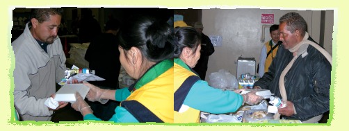 黄金4年(2007年)元月20日,洛杉矶同修在师父的爱力加持下,在加州圣塔安纳(Santa Ana)的“军营收容所”(Armories Shelter)举办了一场美味的素食飨宴。 参加餐会的游民大约有两百位,我们还准备了毛衣、帽子、手套和个人卫生用品,分送给这些无家可归的朋友。同修们齐心协力一起服务大家,现场充满了爱的气氛。 活动结束后,游民朋友迫不及待地表达他们的感激之意,许多人皆表示:“我们从来不曾受到如此尊重与爱心的礼遇。”同修们的回答都是:“不用感谢我们,感谢上帝吧!”其中一位游民表示:“这个世界上有人真心关怀他人,真是太好了!”