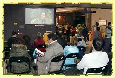 【蒙特利尔讯】黄金4年(2007年)2月4日,蒙特利尔小中心参加当地悠乐社区于奥林匹克运动场(Olympic Stadium)举办的农历新年庆典活动。我们在摊位的一角展出许多小动物快乐地齐聚在草原上的情景,吸引了许多小孩的目光,他们的父母也高兴地收下“您也可以选择这样的生活”传单。品尝过我们提供的素食后,有些来宾进一步询问有关素食的资讯,以及如何准备健康的餐饮。我们也架设投影机,播放师父的讲经开示、诗歌、人道救援活动,以及“无上师电视台”的特别报导。许多来宾都坐下来观看节目,有些人甚至一待就是三个小时。当他们离开时,我们再递上“无上师电视台”的传单。 与会民众看到同修都盛装打扮且笑容可掬,便会看一下师父的法相,并进一步询问世界会的事情。我们因而了解到外人对于师父及其教理的初步印象,通常是藉由观察徒弟而来。来宾们在祥和自在的气氛中询问灵性上的问题,并与我们交换对于素食的观点,有些人还询问小中心的地址,以便日后来访并进一步了解师父的教理。