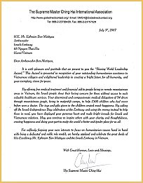 黄 金4年(2007年)10月25日,清海无上师世界会的会员们来到悠乐的河内(Hanoi),代表师父将“全球优秀领导奖”颁赠给以色列驻悠乐大使伊夫朗.班-马提友先生(Mr. Ephraim Ben-Matityau)、拉菲.可特医师(Dr. Rafi Kot)和悠乐的家庭医疗团(Family Medical Practice),以表彰他们在悠乐济弱扶倾的杰出善行。 藉由发起“以色列─悠乐人道任务”的活动,一群医护人员为悠乐偏远地区的居民提供免费的医疗服务与经济援助,所有的工作人员都发挥奉献的精神,以爱心关怀无法享有保健服务的贫困民众。 在今年第二届“以色列─悠乐人道任务”的活动中,医疗团队来到广平省(Quang Binh)的明化县(Minh Hoa),代表团包括五十四位来自以色列和其他国家的医师、护士和相关医疗人员,他们牺牲自己的时间,暂别家庭和所爱的人,为偏远地区贫苦的居民提供医疗照护和经济援助。在五月份的短短一星期里,“人道任务”帮助了五千四百多位贫民,其中有七成是从未看过医生的孩童。 颁奖典礼在大使的官邸举行,现场洋溢着轻松欢乐的气氛。其他在场观礼的贵宾包括:以色列驻河内大使馆公使那提.布鲁克先生(Mr. Nati Brook)、河内家庭医疗团的内科医生亚隆.阿兹蒙医师(Dr. Yaron Atzmon)、大使馆工作人员和“以色列─悠乐人道任务”的团员。 在接受“全球优秀领导奖”时,班-马提友大使强调,要成功推动“以色列─悠乐人道任务”,需要优秀的伙伴,他特别推荐可特医师这位和他们共同努力的重要伙伴,一起分享“全球优秀领导奖”的荣耀。可特医师则接着提议,家庭医疗团的医护人员也应该同享这份荣耀;家庭医疗团是他在悠乐创办的一个诊所团体。班-马提友大使和可特医师两人英明的领导风范、无私的精神和谦卑的态度,确实令人钦佩。
