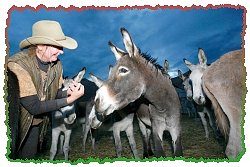 “野驴拯救牧场”(Wild Burro Rescue Sanctuary)坐落在美国加州奥兰恰(Olancha)内华达山脉(Sierra Nevada Mountains)的一处沙漠山脚下,临近死谷国家公园(Death Valley National Park)。虽然牧场设备简陋,四周荒凉干旱、严重缺水,但是对居住于此将近两百头获救的野驴而言,这里却像天堂一样。 这种野驴是在大约四百年前,为了帮助运输而从非洲引入美国,但自从现代运输工具日益发达后,野驴便丧失了商业价值而被遗弃在死谷的沙漠中,任其自生自灭。野驴拥有强盛的生命力,繁殖很快,死谷国家公园管理局认为野驴和其他人畜争夺有限的水源,破坏生态平衡,因而决定剿杀所有野驴。从1987到1994年,公园管理人员在死谷国家公园已 结束了400多头野驴的生命。 1991年,戴安娜.琼特丝(Diana Chontos)得知这个消息后,无法忍受那些可爱无辜的生命被如此对待,于是她开始独自筹集资金,招募志工,并雇请专业人士,倾尽全力在死谷展开大规模的野驴救援行动,并成立“野驴救援协会”。经过几个月艰难的协商之后,戴安娜终于在1994年底促使国家公园管理局暂时停止剿杀行动,但条件是:戴安娜必须持续在死谷国家公园进行救援,收养这些野驴。 戴安娜前后从死谷国家公园营救出五百多头野驴,他们大部分都被“野驴救援协会”的成员和一般民众收养,剩下的近两百头野驴,大多因高龄体弱而需要特殊照顾。六年前戴安娜带着一百多头野驴流落到奥兰恰时,贷款买下靠近死谷和其他几个野驴生活区的一处牧场,以方便救援,并就近监视国家公园管理局,防止屠杀再次发生。除了照顾野驴,其他牧场和私人所养的驴子和马,若因高龄病弱而即将遭到屠宰,戴安娜也会爱心收养他们。此外,牧场还收养了很多被遗弃的猫和狗。 牧场的财务状况一直入不敷出,而且工作繁重,尽管如此,戴安娜关怀动物的爱心始终不变。牧场最主要的三名成员是戴安娜,贝琪和寇里斯。戴安娜能叫出每一只毛驴的名字,并讲出他们的故事,其中有两头甚至是她亲手接生的。毛色花白的老驴波比(Poppy)已将近四十岁,至少相当于人类的八十岁,年纪大的毛驴也会怕冷,所以每天入夜前,牧场的义工都会为波比披上毛驴专用的外套保暖。一位义工表示,这里堪称是动物的天堂,不同的动物间和谐相处,而人类是他们最好的朋友。“每当我钻到驴圈时,野驴们就会默默围上来,靠在我身旁,…让我深深感觉到他们对人类那种无条件的信任。”此外,戴安娜和贝琪都是素食者,因此牧场其他义工也都跟着吃素。戴安娜是烹调高手,她能想办法把最简单的豆子、蔬菜等食材烹调得花样百出、美味可口。 戴安娜以无畏的精神和无条件的爱拯救了数百头野驴,并在如此艰难的环境下维持牧场的运转,她这种崇高的典范着实令人感佩。