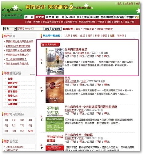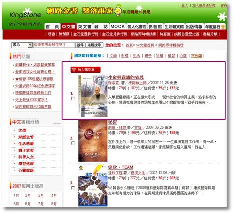《生命与意识的省思》新书甫上市,即在24小时内,登上金石堂网路书店心灵类排行第一名,一周内攀登不分类总排行第一名!