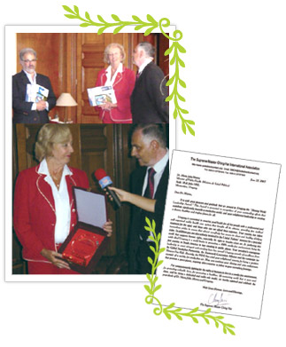 阿根廷新闻组(原文为西班牙文) 颁奖典礼于黄金5年(2008年)3月27日在乌拉圭的首都蒙特维多(Montevideo)举行,该国的卫生部主任荷西.巴索博士(Dr. Jorge Basso)和国家烟害防制计划主席温斯顿.阿巴斯卡尔博士(Dr. Winston Abascal)都出席了这项典礼。世界会会员将奖牌和包括师父最新出版品在内的一些礼物,颁赠给卫生部长马莉亚.茱莉亚.慕纽兹博士(Dr. María Julia Muñoz)。 与会来宾也观看了有关地球因全球暖化而陷入危急情况的《紧急求救》影片。看完影片后,慕纽兹博士乐观地表示,世界卫生组织已号召所有国家于4月7日齐聚讨论如何因应气候变迁的影响。祈愿上帝启迪并加持乌拉圭人民,让他们享有和平、幸福与安康,也祈愿其他国家有越来越多明智又富爱心的领导人向乌拉圭高雅的典范看齐。