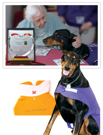 黄金5年(2008年)2月24日,来自俄亥俄小中心的世界会会员颁赠“全球优秀爱心奖”给当地“K-9爱心专案”小组的治疗犬山姆(Sam)。山姆是一只杜宾狗,他定期前往医院、医疗照护机构和老人安养中心拜访,带给病人无条件的爱与欢乐。 除了获颁奖牌,山姆还收到清海无上师赠予的几件可爱的“快乐狗狗英雄夹克”及点心,他的照料者哲乐夫妇(Mr. and Mrs. Zeller)则获赠《真爱奇遇--我的鸟羽兄弟》和《今生有你--我的狗宝贝》等灵性书籍。哲乐先生表示对茹素很感兴趣。“K-9爱心专案”的负责人凯蒂.科斯特罗(Katie Costello)说,看到山姆获奖,使她深感与有荣焉。而瑞奇镇贝里尔菲尔得老人中心(Senior Center Briarfield at the Ridge)的活动组组长莫瑞因.麦卡地(Maureen McCarty)则对清海无上师的爱心与认同表示感激。 我们要向山姆表达深深的谢意,感谢你从事这份意义非凡的工作。愿上帝加持你,以及所有受惠于你的帮助而获得欢乐、爱心及安详的人。