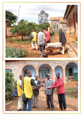 同修接着前往卢安达西部的鲁济济省(Ruzizi),该省尼寇伯岛(Nkombo)上的房子与学校都在地震中严重毁损。同修从当地人民口中得知,一些国际非营利组织与卢安达政府已经为灾民提供食物、药品、毯子和充当临时教室的帐篷,不过一些学生仍在户外的树下上课。由于灾民仍需水泥来兴建较坚固的教室与房子,以取代旧有的土造建筑物,所以同修前往附近的镇上购买了十吨水泥,装满两卡车,并有机会会晤该镇的镇长。我们向镇长介绍世界会与师父后,她对同修从刚果长途跋涉到卢安达提供援助,深表感动,并询问为何卢安达没有世界会的小中心?同修回答∶“如果您诚心祈求、真心想要,愿望就会成真。”在离开那个地区之前,同修们还与当地民众分享样书,以及“无上师电视台”和“您也可以选择这样的生活”传单。