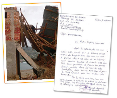 同修们首先从刚果的首都金夏沙(Kinshasa)飞往果玛市(Goma),然后再乘船到布卡乌市(Bukavu)。所有救援物资包括食物与药品都顺利送达,而当地复原工作也正逐步进行中。 同修来到山区的村庄卡巴雷(Kabare)时,发现当地充当学校的教堂在地震中受损严重,村里的农民除了担心牧师没有地方可住,也忧心小孩的教育会因而中断。于是救援队立即购买25顶帐篷,权充临时的住所与教室,并购买水泥与沙来整修教堂。由于师父加持,加上当地农民的齐心协力,所有艰难的情况都顺利解决了。 此外,当地居民在接获样书、“无上师电视台”讯息与“您也可以选择这样的生活”传单后,也深受师父的爱心所感动。一位牧师表示∶“我们相信这次援助就是我们祷告所获得的回应。”另一