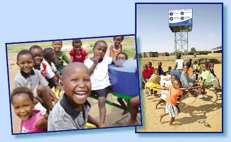 为提供安全干净的饮用水,南非企业家崔佛.弗德(Trevor Field)发明了一种称为“游戏抽水机”(PlayPump)的给水系统,这种设计是将旋转木马与抽水机、储水槽、水龙头架设在一起,当小朋友坐上去玩耍时,随着旋转木马的转动,一小时就可抽出370加仑的井水。此外,社区也不必为这种设备负担任何费用,因为储水槽四面外墙的其中两面可出租作为商业广告之用,这些广告收入就已足够支付整个维修费用,而另外二个墙面则可用来张贴健康与教育资讯。弗德的目标是在10个非洲国家设置4000座“游戏抽水机”,以供应干净的饮用水予上千万的非洲居民。