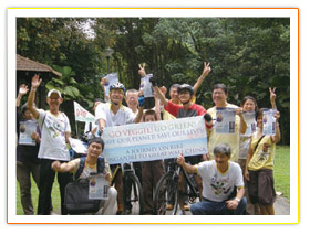 为了进一步唤起民众意识,一位同修展开令人惊叹的单车之旅。旅途中,他带着印有“开始吃素!加入环保!拯救地球,拯救生命”的旗帜,从新加坡行经马来西亚,进入泰国,横跨寮国,然后一路骑到中国的长城。这段历时六个月的旅程,全长估计有9千公里,自黄金5年(2008年)3月10日从新加坡的武吉巴督自然公园(Bukit
