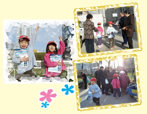 住在河北的云云和默默是幼稚园大班的小朋友,他们在黄金4年(2007年)听了清海无上师的开示后,主动要求吃素。云云和奶奶观看“无上师电视台”的节目,了解地球的危机后,她难过地哭了。奶奶把她搂在怀里,笑着对她说:“你可以帮助地球呀!如果地球上有很多人吃素,灾难就会减少,大家就得救了。我们还有两年的时间可以扭转危机。”云云有信心地点点头,她和男孩默默组成“地球小卫士组”,加入的条件是“吃全素”,然后他们在社区、学校等地发放“ 紧急求救”传单。 云云在发传单时,总是先有礼貌地打招呼,然后再说:“拯救地球,你我能行!”童心真挚,许多人都感动地说:“谢谢,你真棒!”默默身强力壮,不顾疲劳,奔波发放。尽管北风呼啸,默默的嘴唇因干裂而淌出鲜血,但他全然不顾,直到最后一张传单发完才肯喝水。 云云有时向人们传播这项紧急的讯息时遭遇了挫折,奶奶给她讲老子《道德经》的内容:“上士闻道,勤而行之;中士闻道,若存若亡;下士闻道,大笑之,不笑不足以为道。”听完后,她很快又信心十足,快乐无比!她问八岁的姊姊:“你要加入地球小卫士吗?”姊姊说:“行!我是班里的宣传干部,可以给同学们发传单。”云云说:“那你必须吃素。”姊姊说:“好吧,我想一想,可是发传单太累了。”云云说:“等把地球拯救好了,再休息好吗?”奶奶在一旁听了,备受鼓舞!有这么勇敢的地球小卫士,还有伟大的师父带领,我们怎会不成功呢?