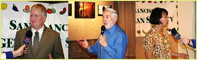 美国旧金山 成功的无肉午宴 圣荷西和旧金山小中心的同修参加了“旧金山素食协会”和“普世一神教”(First Unitarian Universalist)旧金山教会所主办的“无肉日”庆祝活动,并在活动现场采访与会来宾。辛纳尔女士准备了豪华丰盛的午宴,免费供来宾享用,菜色包括各式各样的素食佳肴与纯素巧克力布朗尼和饼干。来自不同背景的知名客座演讲者,也针对茹素的利益以及保护动物免于遭受残酷对待的议题发表演说。