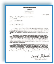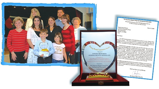 黄金5年(2008年)4月9日星期三下午,本地九岁的丹尼尔.里克兹(Daniel Rickards)在同学与众多家长的观礼下,于其就读的加州天堂小学(Paradise Elementary School)的一场特别典礼中获颁“全球优秀爱心奖”。除了心形的水晶奖牌外,丹尼尔也获赠一份礼盒,里面装有师父的音乐创作CD、DVD、故事书,以及师父最近出版的所有图文并茂著作,包括荣登亚马逊畅销书总排行榜冠军的《高贵的野生》,另外还获得师父赠送的三千美元支票。
