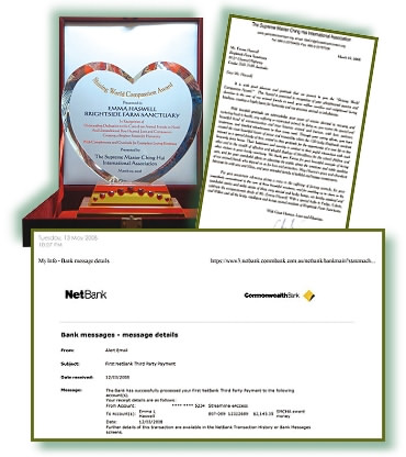 Valley Shire)的罗伯特.阿姆斯壮市长(Robert Armstrong)恭贺艾玛获奖,并感谢她在该郡所从事的善行。艾玛的一些朋友和“塔斯马尼亚反虐待动物组织”的会员都到场观礼。艾玛对于获赠精美的奖牌以及师父的著作和DVD等赠礼深表感激,也很感谢墨尔本的世界会会员捐赠了九百元澳币;这是同修在得知艾玛的慈善义行后,深受感动而捐助的款项。