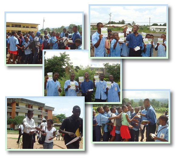 【喀麦隆讯】由于感受到传播素食理念及加速提升大众对全球暖化危害的认知是刻不容缓的事,清海无上师世界会喀麦隆的会员前往当地大学与中学就这两个主题进行宣导活动。 在说明会上,同修们分发“您也可以选择这样的生活”传单及有关气候变迁的“紧急求救”传单,并让学生有机会针对这两个主题发问,再由同修加以解释与深入说明。许多学生都十分认同采行茹素饮食的理由,不少学生也对逐渐恶化的全球暖化现象可能导致多重又可悲的后果忧心忡忡。接获传单的学生们对于能免费获得这些拯救地球的重要资讯,都真挚表达了万分的谢意。 同修们积极在杜阿拉(Douala)与位于山脚下的布埃亚(Buea)进行宣导活动,目前已造访的教育机构包括:杜阿拉大学(University