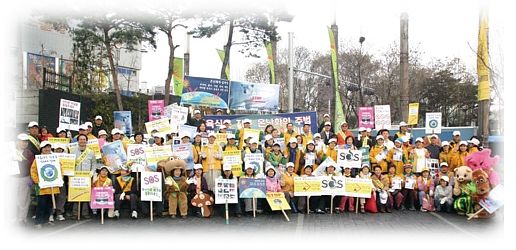 【首尔讯】清海无上师世界会南韩的会员把握每个机会宣导素食,持续努力协助减缓全球暖化所造成的危机。 黄金5年(2008年)4月18日,首尔的世界会会员参加政府在国会所举行的誓愿典礼,以推广素食,带给韩国青少年健康幸福。同修们也安排素食品尝活动,并举办演讲,强调素食的重要性及肉食的害处,同时播放美国太空总署(NASA)有关全球暖化的影片。与会的立法委员、教师和韩国教师暨教育工作联盟的领导成员,共同宣布3月30日为“儿童健康日”。 约于三周前的3月30日,逾百位同修参加首尔市中心的一场游行,大家高举“紧急求救”宣传标语,并透过扩音器播放相关讯息,同时免费供应素食佳肴,鼓励人们茹素,以有效解决气候变迁的问题。 此外,为了庆祝4月5日植树节,仁川市的世界会会员与其他千名参与者应政府环保林务局的请求,积极种植了5000棵树,以减缓气温的攀升。 4月20日,首尔举行了“地球日”庆祝活动,当天有如夏天般的天气正是地球暖化的铁证。世界会会员在首尔市政厅前提供素食餐点给1500多位民众,许多人很惊讶得知原来无肉饮食可以减缓气候变迁。韩国环保活动联盟代表尹畯河先生(Yoon Jun-Ha)建议大家∶“我们应减少肉食,多利用大众运输工具,并节约消费。政府应制定新政策来缓和地球暖化,民间企业应降低能源消耗。”