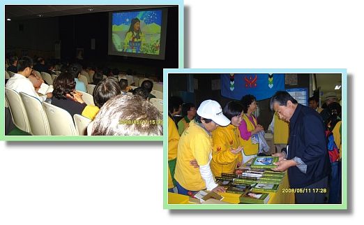 【蔚山讯】5月13日,蔚山同修在当地的社区活动中心举办一场灵性讲座,以宣扬师父教理。同修们在活动前张贴海报和分发传单,广传讲座的消息。 讲座开始进行前,来宾们有机会在活动中心的门厅浏览师父的出版品,并一边享用茶点。大约有150位民众参加这次讲座,他们都获赠一份资料袋,里面装有全球暖化的DVD、传单、样书、蔚山小中心的联络资料和师父的开示。我们首先播放有关气候变迁的《紧急求救》影片,随后播放师父的开示。有33位来宾学了方便法,其中一位一再地感谢我们举办这场讲座,让他有机会学到这个静坐方法。我们为来宾们准备了素食餐盒,每个人都带着灿烂的笑容离去。同修们齐心协力透过这场活动将师父的爱带到蔚山,大家都度过愉快的时光。