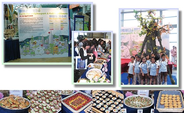 同修提供素食餐点、“紧急求救”小册和DVD给来宾,让大众了解吃素是减缓地球暖化最有效的方法。我们也采访显要的嘉宾,包括香港环境保护署环境保护主任容婷芳女士(Joanne Yung)和香港地球之友总干事刘祉锋先生(Edwin Lau)。所有来宾、参展者和媒体代表对色香味俱全的素食佳肴都感到惊喜不已。超级名模兼环保大使乔瑟琳.路可(Jocelyn Luko)说:“我乐于尝试素食,它对我们的健康和地球都很有利益。”来自美国加州的行动树人(Walking Tree Man)暨环保人士克立夫.史宾葛先生(Cliff Spenger)表示:“假如每个人能开始减少吃肉,就可以为我们的地球母亲带来很多帮助。” 这些观点已广泛地传播出去,并激励人们选择素食,作为迈向遏止气候变迁的重要一步。