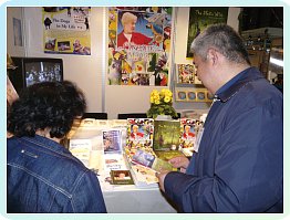 【日内瓦讯】黄金5年(2008年)4月30日至5月4日,日内瓦同修在巴黎小中心的协助下,参加了在日内瓦举行的国际书籍印刷展。来自15个国家的555个参展单位,大规模展出各类引人入胜的书籍,吸引了大约十万人潮前来参观。 在书展中,同修很荣幸将师父的著作《真爱奇遇--我的鸟羽兄弟》致赠给多位显要嘉宾,诸如:瑞士总统帕斯卡尔.库思潘先生(Pascal Couchepin)、日内瓦市长帕翠斯.慕尼先生(Patrice Mugny)、埃及文化部次长纳泽尔.爱尔-安萨瑞先生(Nasser El-Ansary)、圣嘉伦州(St. Gallen)的州长凯瑟琳.西尔柏女士(Katherine Hilber),他们都欣然接受赠书。 同修也会见了简.齐格勒先生(Jean Ziegler),他是知名的政治家、作家、大学资深教授,也是现任的联合国粮食权发言人。当同修将《真爱奇遇--我的鸟羽兄弟》、“紧急求救”传单与“无上师电视台”文宣送给齐格勒先生时,他表示很高兴有类似世界会这样的团体,正极力提醒大众重视气候变迁和其他重要的议题,他也祝我们万事如意。 同修也采访了许多不同文化和专业领域的参展单位,得知他们都为了改善世界而努力,而且皆渴望和平与爱时,的确令人士气大振。许多来宾前来同修的摊位浏览师父的著作,他们对色彩缤纷的照片赞不绝口,并体会到书中所传达的爱与快乐的讯息,小朋友们更是受到这些书所吸引。 同修分送了许多“紧急求救”、“无上师电视台”和有关师父书籍的传单,民众都欣然接受。书展结束时,瑞士电视公司一位很著名的记者玛蒂娜.曲葩女士(Martina