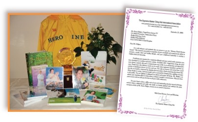 由于她为动物福利的高雅理想所做的奉献,卡琳.瑞爵尔斯女士获得清海无上师颁赠「全球优秀女英雄奖」以兹表扬。黄金5年(2008年)11月30日,我们英国的世界会会员借着卡琳参加一项动物救援活动「免于残酷的圣诞节」(Cruelty Free Christmas)之便颁奖给她。卡琳在这项活动中设立了一个摊位来推广她的网络电视台。世界会会员趁卡琳短暂离开的机会,安排一张桌子摆设了精美的奖牌、许多可爱的礼物和一件特别为她量身订做的女英雄夹克。当卡琳回来看到桌子时,她的眼中充满了泪水,还说她简直不敢相信从那张桌子所散发出来的爱。在颁奖仪式进行当中,有一小群民众靠拢过来。当卡琳接下精美的水晶奖牌,并深情聆听我们一位世界会会员大声朗读师父的褒奖函时,群众都报以热烈的掌声。