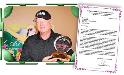 除了在他每周一次的广播节目中畅谈纯素饮食的重要性外,林登先生也在商展市集和节庆活动上为动物发声,用扩音器在销售皮草的商店门前抗议,并参加无以数计的动物权益集会来为动物代言。他坚信只有茹素是不够的,因为还有一些最残忍的折磨与虐待行为强加在乳牛、马和其它动物身上,只为了从动物身上取得原料来制作各种副产品。吃全素与环保可以说是他生命的重心。 林登先生与师父有很深的缘分。他成为世界会的友人已有一段相当长的时日,是「无上师电视台」的「素食菁英」节目最早访问的来宾。他的广播节目数年来一直接受加州圣荷西「素食屋」餐厅的赞助,他还于2008年初邀请师父上过他的广播节目。当他参加在好莱坞所举行的「SOS气候变迁国际会议」时,他非常高兴能看到师父和数百位与他志同道合的人士。 由于刻上林登先生名字的「全球优秀英雄奖」奖牌恰好在师父的《天艺》新书发表会前送达,因此同修邀请林登先生以贵宾身分出席新书发表会的艺术品展示及表演活动。在观赏了师父过去廿年来优美艺术创作的盛大展览后,他获颁此奖。那些令人惊叹的艺术创作、光华璀璨的新书,尤其是师父颁发给他的奖牌和师父写给他的感人信函,让林登先生感动得落泪。