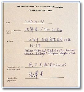 沈翠英女士接获师父2万美元捐款的收据 历年爱心活动回顾