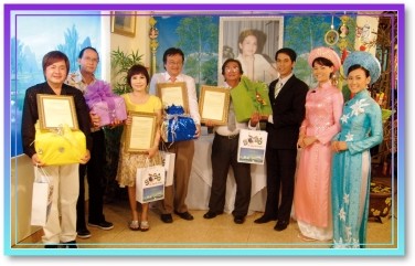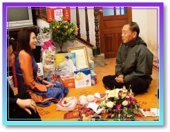 【西贡讯】黄金6年(2009年)1月22日,我们世界会的代表在西贡市的天国(Thiên Quốc)素食餐厅,将师父的农历新年贺函与礼物送给数名悠乐的知名艺人和一位老师。受邀的贵宾包括音乐家泰安(Thái An)、演员兼导演清田(Thanh Điền)、女演员清金慧(Thanh Kim Huệ)、男演员珠清(Châu Thanh)和坚江省(Kiên Giang)的善心人士陈文壬老师(Trần Văn Nhâm)。向每位贵宾一一朗读所有的感人信函后,他们都觉得虽然师父是如此伟大的灵性导师,工作又十分繁忙,她却依然如此平易近人,就像熟识的亲人一般。艺人清金慧和珠清以悠乐传统戏曲的风格为师父和「无上师电视台」全球的观众献唱了一首摘录自师父诗作《勿忘我》中的曲子。他们悦耳动听和丰富甜美的嗓音,藉由上帝的圣爱提升了所有在场者的心灵。