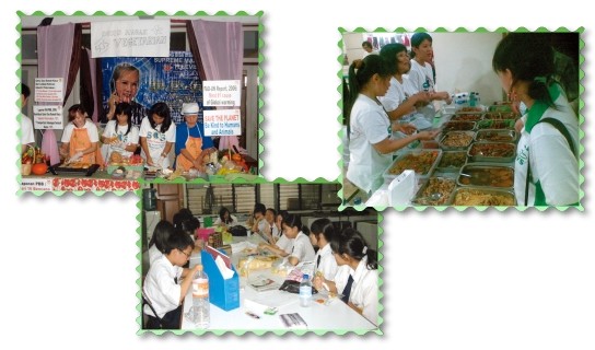 为了向当地民众展示纯素饮食不仅健康美味,而且容易烹调,「快乐修行人厨房工作组」不仅举办烹饪班,还参加在学校、商场、购物中心、公司,甚至在南雅加达外交部办公大楼所举办的美食园游会。他们还参加了2008年「世界素食日」展览会,并举办各种相关的研讨会,同时利用各种机会分发「您也可以选择这样的生活」和「紧急求救」传单。 人们对同修烹饪的精致菜肴和传达的讯息都有非常正面积极的响应。例如,「快乐修行人厨房工作组」受邀前往基督教教育委员会播种者第2初级中学(BPK Penabur 2 Junior High School)教导学生纯素烹饪,结果所有的学生都非常喜欢他们的纯素菜肴,并要求老师经常安排这种课程。学校的校长和所有的老师也承诺每周供应2至3天的素食餐。还有一位办公室职员告诉同修,先前他因为吃肉过多而中风,现在他感觉自己彷佛是受到指引而遇见同修,并获知师父的教理。 黄金5年(2008年)9月11日和12日,在与雅加达妇女电台(Women’s Radio)的访谈中,厨房组解释为何大众应立即改采植物性饮食,以及为何纯素生活方式能够拯救地球免于全球暖化的浩劫。主持人在最后为听众做总结时指出︰对大部分人而言,饮食是为了个人的生存;但以世界会的观点来看,饮食更攸关整个地球的生存。 ![]() 纯素蔬食小铺工作组