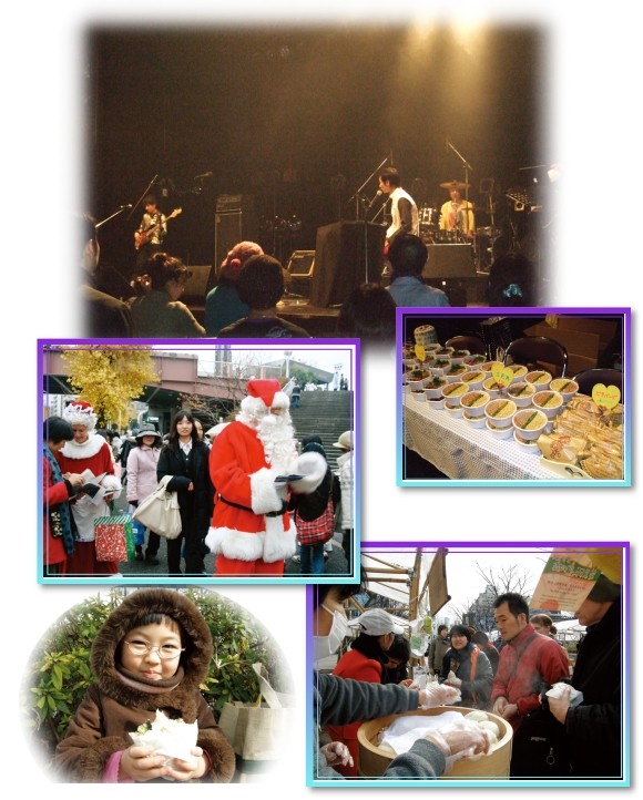圣诞节期间,我们东京小中心的世界会会员也装扮成圣诞老人分发Loving Hut东京店的宣传资料与「紧急求救」传单。现场的民众,尤其是小朋友,都很开心能从圣诞老人手中拿到令人关注的信息与糖果,有些人之后还去东京店享受了一顿丰盛的纯素大餐。 黄金6年(2009年)1月24日,Loving Hut东京店首度在东京代代木公园每月一次的「地球日市集」(Earth Day Market)设立摊位。这个市集旨在鼓励有机耕作和提倡环保。许多来宾都很喜欢东京店自制的热馒头。 同修打算将来在不同的活动中设置Loving Hut的摊位,同时会加倍努力将纯素饮食尽可能推广给更多人。