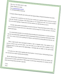 为感激泰莎.萨拉查女士具有前瞻性思维的新闻报导,清海无上师世界会特别向她致上一封感谢函。萨拉查女士在接到信后回函表示︰「我真的、真的非常感谢贵会对『医生们建议大众摒弃肉类 』这篇报导所写的回应。我并不是每天都会接获这样的肯定回响,这将鼓励我在撰写有关健康主题的文章时,一次比一次做得更好……。我曾撰写过多篇文章,阐述菲律宾民众如何能从植物性饮食生活方式获益。」她也透露自己一直是「无上师电视台」的忠实观众,目前正在搜寻有关植物性饮食的最新资料与研究。她祝福我们的世界会会员和支持者「人数继续增加,直到全球所有67亿人口都摒弃食用动物性蛋白质、爱护动物、爱护地球和所有众生,并改采纯素的饮食」。