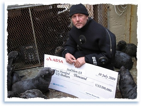 弗朗索瓦.雨果先生(Francois Hugo)将小海豹命名为「甜心」(Sweety),当时她才10个月大,双鳍都被钓鱼线割断了。她无法游泳或自己觅食,正一步步走向饥渴死亡。虽然他帮这只美丽的小海豹解开钓线,但她仍过于虚弱而无法逃脱,因此继续留下来接受他温柔的照顾,直到恢复体力、能再度游泳为止。这段与「甜心」这只美丽海洋生物邂逅的难忘际遇,让弗朗索瓦.雨果先生意识到软毛海豹(Cape Fur Seals)的困境,也促使他在10年前创立了「南非海豹警戒」组织(Seal Alert-SA)。 纳米比亚当地主管机关每年开放的海豹猎捕季是从7月1日开始,一直持续到11月15日。每天凌晨在观光客还未抵达海岸观赏新生海豹之前,有多达140名未受训练的季节性临时工聚集在十字海岬(Cape Cross)、吕德里茨(Luderitz)和亚特拉斯湾(Atlas Bay),主管当局准许这些受雇的临时工人,在这些地区以棍棒打死数万只无辜的小海豹。所有新生的海豹有60%是出生在这3处海岸。在驱赶屠杀海豹群的过程中,一些海豹试图逃脱,然而在惊慌的过程中,许多小海豹和母亲失散,最后只得孤单、饥饿地在大海中漫无目的地漂流。这些落单的小海豹,有些游泳数百公里以寻找食物或海豹群,但是因为他们年幼又缺乏经验,所以许多都溺毙或因其它原因死亡而被冲上岸。弗朗索瓦.雨果先生经常拯救并照料这些落单的小海豹,使他们恢复健康。他在第一次拯救海豹时得到一个宝贵经验,那就是始终尊重他们的自由,即使当他在照料时,也从不把海豹关起来。透过亲身与海豹互动的经验,雨果先生领悟到海豹的反应就如同人类一般︰「他们能为自己思考,他们能思考什么对他们是好的、什么对他们是不好的。看到人类帮助他们时,他们知道。」对他而言,海豹是爱的极致表现。 今年7月,弗朗索瓦.雨果先生勇敢地尝试,希望以1,400万美元的代价,买断纳米比亚的海豹捕猎产业。我们最慈悲的师父得知这项英勇的高贵义行后,也爱心捐赠20万美元,这是「南非海豹警戒」至今收到金额最大的一笔捐款。雨果先生向师父表达深挚的敬意,并承诺这笔捐款的每一分钱,都会直接用于拯救软毛海豹。虽然此次买断猎海豹产业的尝试没有成功,但雨果先生仍坚持决心,积极执行他的使命。