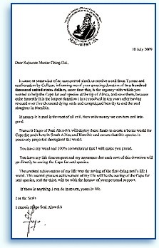 黄金6年(2009年)11月3日,清海无上师颁予弗朗索瓦.雨果先生「全球优秀爱心奖」。雨果先生谦称自己愧不敢当,并再三对清海无上师慈悲无比的协助与鼓励表达衷心的感谢。其中一部分捐款让他得以购置扩充和改善救援中心的设备,给予海豹更好的照料。 我们要感谢「南非海豹警戒」的弗朗索瓦.雨果先生,令人赞扬的努力付出,致力关怀保护软毛海豹,也祈祷所有众生能早日和平与和谐地共处。透过我们个人的选择与集体意识的提升,我们将能创造人间天堂,让动物和人类之间完全没有物种的分别,互相尊重与爱护。