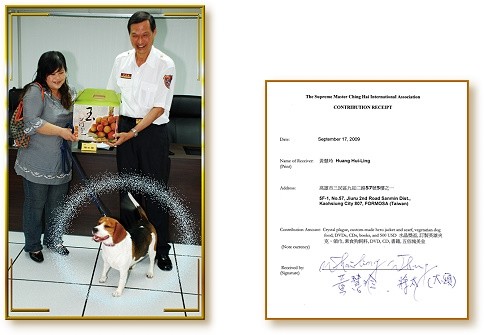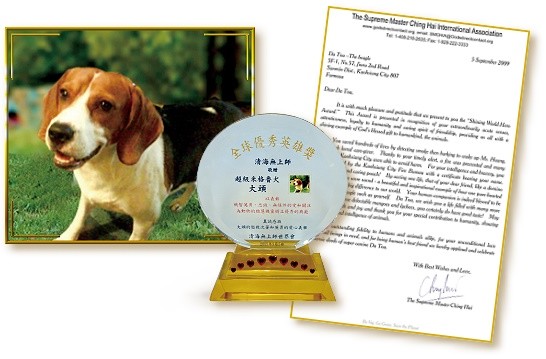今年5月1日,福尔摩沙高雄市黄慧玲女士饲养的米格鲁犬「大头」,凭着灵敏与机警,及时化解一场可能引爆整栋大楼的灾难,使108户住家逃过一劫。 事发当天,黄女士住的大楼里,有一名男子企图引爆瓦斯,「大头」闻到浓烟与焦味后,立即狂吠叫醒黄女士,让她得以及时报警,阻止了一场灾难的发生。为表彰「大头」的英勇义行,黄金6年(2009年)9月25日,世界会会员代表清海无上师颁发「全球优秀英雄奖」给「大头」,并致赠师父的著作、DVD、CD,以及纯素狗饲料、洁牙骨和500美元。此外,「大头」也获得高雄市消防局颁发奖状,并担任消防安全大使。消防局藉此机会为大楼的住户和附近小区做了居家火灾防范的倡导,提醒民众居家的安全。