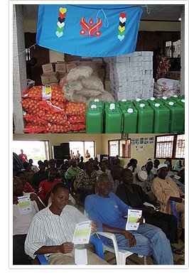 2009年8月24日,由肯亚的世界会会员所组成的救援队抵达爱特库巴市,拜会市长一同讨论救灾的工作。救援队于26日抵达灾区,将食物和一些生活基本必需品分发给灾民,并前往当地的电台接受访问。救援队藉此机会说明救灾工作,并呼吁听众茹素以减低全球暖化,藉以防止未来发生更多灾难。媒体询问救援队为何千里迢迢前来帮助灾民,同修回答:「是因为上帝的爱!」