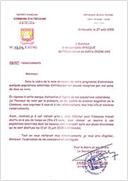 爱特库巴市长波林.克劳德.丹贺先生(Paulin Claude Danho)在一封感谢函中向世界会表达他最深切诚挚的谢意,信中说道:「此外,我也要恭喜你们在这么短的时间内,在科特迪瓦完成数量如此惊人的工作,让灾民重拾欢笑。」