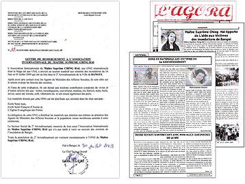 2009年6月底和7月初,中非共和国的首都班基(Bangui)遭逢严重水患。喀麦隆同修迅速组成一支救援队,带着清海无上师所捐赠的1万美元,前往该市受创最严重的第二行政区展开救灾的工作。