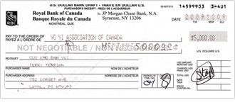 致赠加拿大无为协会的5千美元银行汇票