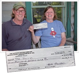 清海无上师获悉法尔夫妇热心提供莫莉一个家后,慈悲捐赠3千美元给莫莉的新照护者,以支持他们爱心照料获救动物的义举。黄金6年(2009年)5月30日,世界会会员代表清海无上师拜访法尔农场,致赠捐款及师父的国际冠军畅销书《高贵的野生》。此外,同修还赠送师父的精选歌曲CD给法尔夫妇。法尔夫妇亲切地带领同修探望这个60英亩农场内的动物。莫莉看起来十分自在,她甚至跟一头名叫韦斯勒(Wexley)的小公牛结为莫逆。法尔夫妇还收留了其它动物,包括山羊、绵羊、母鸡、公鸡、小马、鹅、狗和猫。能够参观这个庇护所并探望所里幸福、安详的动物居民真是令人感到非常愉快。