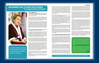 出生于悠乐的人道主义者暨慈善家清海,一直推崇英国政府致力推行永续环保的粮食政策,她更敦促英国首相布朗(Gordon