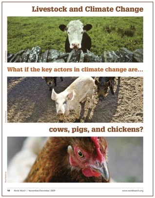 《世界瞭望杂志》(World Watch Magazine)11月号所发表的一项最新研究结论指出,畜牧业及其副产品,至少造成51%的全球暖化。这篇报告的作者是世界银行前首席环境顾问古德兰博士(Robert Goodland)和世界银行高级研究员杰夫.安亨先生(Jeff Anhang),其研究的基础是根据联合国粮食及农业组织(Food and Agriculture Organization of the United Nations,简称FAO)于2006年发表知名的《牲畜的巨大阴影》(Livestock's Long Shadow)报告。他们两人重新仔细分析畜牧业直接和间接所排放的温室气体后,纳入并统计许多先前未被列入的项目,并且更新其它多项数据。以下是其研究结果的归纳摘要: