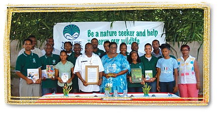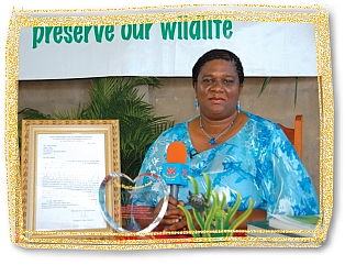 革龟生活在世界各大洋已有1亿年之久,千里达岛(Trinidad)的马图拉海滩(Matura Beach)是他们筑巢产卵地之一。然而在1980年代,因为盗猎者贪图革龟的肉和蛋,加上人们捕捞、沿海开发及污染,造成在该海滩筑巢的革龟将近三分之一死亡。为了拯救这些美丽的生物使其不致灭绝,当地一名妇女苏珊.拉克汉.巴帝斯塔(Suzan Lakhan Baptiste)及其热心奉献的志工队,于1990年成立环保团体“追求自然者”(Nature Seekers),并开始在革龟产卵的季节每晚巡守海滩。她经常独自巡逻到旭日东升,以确保每只雌龟都安然无恙,甚至为了配合巡逻的排班表,不惜辞去白天的工作。1993年,巴帝斯塔女士荣获联合国环境规划署(United Nations Environment Programme)颁奖表扬。由于她的勇气、爱心和优秀领导,她和她的团队终于赢得这场拯救优雅海洋生物的战役,彻底阻止了盗猎者的恶行。如今,革龟在马图拉海滩的存活率几乎已达到百分之百。 为了表彰苏珊.拉克汉.巴帝斯塔女士竭尽心力拯救这些动物并提升人类的意识,清海无上师颁予她“全球优秀爱心奖”,由世界会会员于去年9月在千里达岛的马图拉海滩代表颁赠。在这场由“追求自然者”总干事丹尼斯.山米先生(Dennis Sammy)所主持的颁奖典礼上,巴帝斯塔女士获赠一封裱框的褒奖函、一面精美的水晶奖牌和师父的国际畅销冠军书。此外,她还收到师父捐给“追求自然者”的1万美元支票。为了表达谢意,山米先生也致赠师父一纸“海龟领养证书”,以证明师父领养了一只名叫马图拉的海龟。 为了表彰苏珊.拉克汉.巴帝斯塔女士竭尽心力拯救这些动物并提升人类的意识,清海无上师颁予她“全球优秀爱心奖”,由世界会会员于去年9月在千里达岛的马图拉海滩代表颁赠。在这场由“追求自然者”总干事丹尼斯.山米先生(Dennis Sammy)所主持的颁奖典礼上,巴帝斯塔女士获赠一封裱框的褒奖函、一面精美的水晶奖牌和师父的国际畅销冠军书。此外,她还收到师父捐给“追求自然者”的1万美元支票。为了表达谢意,山米先生也致赠师父一纸“海龟领养证书”,以证明师父领养了一只名叫马图拉的海龟。 颁奖典礼结束后,所有来宾都享用了一顿纯素午餐。我们诚挚感谢苏珊.拉克汉.巴帝斯塔女士的慈悲善行,以卓越爱心、高贵情操和真诚关怀来保护这群珍贵众生的性命。