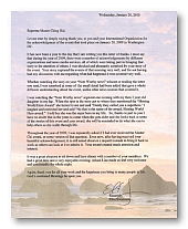 “贵台对这件事的报导令我感到震撼与惊喜,整个报导很中肯地陈述了当天早晨所发生的事件……不论是看贵台《焦点新闻》中的报导,或是读您致赠的褒奖函,让我感到惊喜的是,您们补充的一些小细节赋予这件事全然不同的解读,有别于其他新闻媒体对此事的报导。一天晚上,当时3岁的女儿坐在我的大腿上,与我一起观看《焦点新闻》的片段。当报导提到‘全球优秀英雄奖’时,她转过身来对我说:‘爸爸,他们说你是超级英雄。’我笑着纠正她:‘不是,那是这个奖项的名称--全球优秀英雄奖。’所以,由于您的缘故,我确信将来女儿长大后回顾这个事件的一些报导和您颁赠的奖时,会提醒她在生命的旅程中尽力帮助他人。” 斯文森警官对于获颁的奖牌更进一步表示:“2009年一整年,我多次被问及是否收到清海无上师的奖项,或诸如此类的问题。在接获您颁发的美丽奖牌后,一直到现在我仍被问起或被要求携带奖牌到办公室让同事欣赏。您的奖项引起了许多关注和兴趣。” 他还客气地感谢我们世界会会员的盛情款待,与他共享一个愉快的夜晚。 我们向艾略特.斯文森警官的英勇义行致敬,感谢您的无私、智慧和迅速行动。愿上天在您执行崇高的勤务时继续保佑您。
