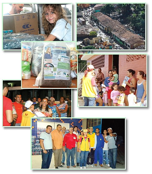 6月,巴西东北部的阿拉戈斯州(Alagoas)和伯南布哥州(Pernambuco)豪雨成灾,3天内降雨量即达36厘米,是3年来见到的最大雨量。据官方消息,阿拉戈斯州至少有20人丧生、3万5千人流离失所,而伯南布哥州则有1万5千人被迫撤离家园。我们的救援队带着师父的1万5千美元爱心捐款,于7月11日抵达伯南布哥州的巴雷罗斯镇(Barreiros),并在镇长、当地官员和志工的热心协助下,前往贝特村(Village of Baeté)、乌纳河(Una River)和普赖尼亚德拜舒村(Prainha de baixo)这3个受灾严重的社区,分发500袋的应急粮食。救援队格外感谢退役的消防员奈夫特上校(Colonel Neyft)和他的一群年轻学生不辞辛劳的协助。 在两地的救援工作中,世界会会员也与当地民众分享,我们对食物的选择会对气候产生重大影响的讯息,期望他们能迅速而明智地改采慈悲、环保的纯素饮食,以防止未来再度发生此类灾难,并过着和平与和谐的生活。