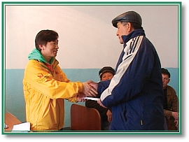 3月29日,韩国救援队带着清海无上师爱心捐赠的1万5千美元,以及韩国的世界会会员捐赠的6千美元,赶往哈萨克灾区。抵达克孜勒阿加什村后,他们先拜会村长,听取村长解说洪水造成的损害,以及灾民从其他国际组织已经获得的援助。世界会会员听从村长的建议,准备了2,500个信封袋,将总计1万7千美元的慰问金分发给那些仍栖身于临时帐篷的灾民。此外,救援队还拜访该村一所学校的主任,并从中得知学校所有的电脑都被洪水冲走了,于是马上提供3千美元给该校购买10台新的电脑。 许多受助灾民都表达了诚挚的谢意,感谢师父派世界会会员远道前来援助。他们希望在生活恢复安定后,能再见到救援队员们。愿上帝加持心地善良的克孜勒阿加什村民,让他们的生活迅速复原。