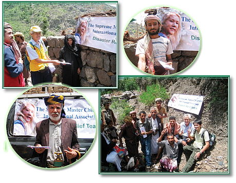 由于山区缺乏茂密繁盛的广大植被,而且地势陡峭,以致今年春末的豪雨严重影响叶门西部及首都沙那。6月12日,马来西亚救援队带着师父的1万美元捐款和深切的爱,动身前往叶门。 在查阅过新闻报导、雇用一位翻译员做向导,并安排了交通事宜后,救援队便前往宰比德镇(Zabid)郊区的阿尔莫沙迪村(Al Morshadieh)和阿布卡阿尔加村(Abkar Al Jah)。他们发现那里有许多住宅的墙壁龟裂或坍塌、地基裸露、小屋被弃置,篱笆和帐篷也都是临时搭建的。因此他们在当地发放救济金给49户家庭。