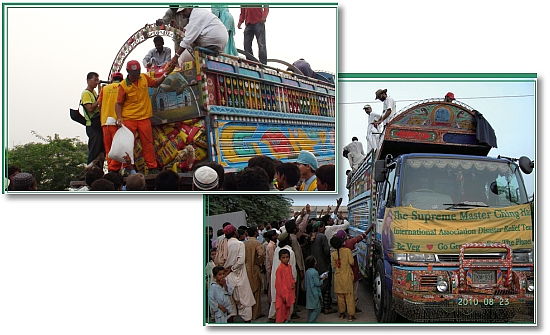 2010年2月中旬,巴基斯坦北部省分遭到大雪侵袭并发生雪崩,许多房舍被厚重的雪所掩埋。由于联外道路受阻,以致灾区粮食供应中断。3个月后,罕萨地区(Hunza)又连续发生豪雨和土石流,导致河流水位高涨至警戒线。政府扩大疏散人群的工作,约有4万5千位当地居民被安置到罕萨周边的20个收容所。清海无上师得知这些灾情后,立即提供总计3万美元的救援金,并分别派遣新加坡和福尔摩沙的世界会会员前往灾区。这两次灾难,我们的救援队在当地非政府组织红新月会(Red Crescent Society)和全方位环保协会(All Green)的大力帮助下,将急需的粮食送到一无所有的灾民手中。 然而,7月底的豪雨又导致俾路支省(Balochistan)境内的巴恩河(Bann River)发生八十几年来最严重的河水泛滥。紧接着,8月14日,信德省(Sindh)境内的印度河(Indus River)又再次爆发洪灾。除了有数百栋泥屋被冲毁外,政府建筑物、当地商店、学校、桥梁及数千英亩农作物也遭到破坏,有一千六百多人丧生,逾2千万幸存者流离失所,急待救援。尽管运送物资和接济受困村民十分困难,巴基斯坦各级政府、世界各国及救援组织仍奋力展开救援,其中受灾最严重的地区之一是信德省的瑙沙罗费洛兹县(Naushahro Feroze)。