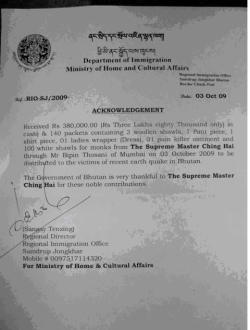 不丹地震灾民感谢师父的爱心礼物