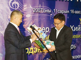 【乌兰巴托讯】为了正式向蒙古地区21家播放“无上师电视台”的有线电视公司致谢,“Loving Hut”爱家国际连锁餐饮的乌兰巴托店于黄金7年(2010年)5月3日举办了一场晚宴。 在聚会中,世界会会员向这些有线电视公司的主管和代表们介绍“无上师电视台”所播放的具有建设性和娱乐性的节目,并让他们认识这个全球性电视台的创办人--我们挚爱的清海无上师。当所有来宾收到世界会赠予的裱框感谢函及精选的师父灵性书籍、CD和DVD时,无不流露出惊喜,并表达了诚挚的谢意。 感谢这些电视公司的高雅工作,几乎每位蒙古人,包括许多蒙古知名人士在内,都听过“无上师电视台”及其传递的重要讯息。尤其是由蒙古著名相扑选手巴特巴雅尔(Batbayar)所赞助的祖国电视台(Ekh Oron TV)对于提倡素食和师父的教理更是不遗余力。 感谢这些电视公司所有充满爱心的员工,祈愿您们的热诚服务能帮助社会快速转型,采行光明的纯素生活方式。也祈愿上帝继续加持蒙古及其纯真善良的人民。