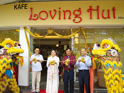 【新山讯】黄金7年(2010年)4月25日,位于新山的“Loving Hut”爱家国际连锁餐饮店正式开幕,这是马来西亚柔佛州的第1家国际纯素连锁餐厅,为市民提供不含动物成分的美味餐点,以推广纯素的生活方式。 该餐厅位于大丰花园的热闹商业区,地点适中,出入方便。餐厅内布置典雅,是亲友聚餐的最佳去处。餐厅内除了陈列师父的冠军畅销书,提供顾客免费阅读之外,也播放有关全球暖化的影片,让顾客可以一面享用美味可口的素食,一面了解吃纯素对地球的帮助。 期望藉由推展爱心的纯素饮食理念,鼓励更多人采行慈悲永续的生活方式。