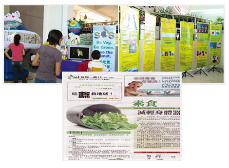 世界会会员也受邀参展,在会场设置了一个摊位播放有关气候变迁的DVD,并分发传单及分享各式各样的纯素美食。许多参观者、展商和志工都对多样美味又健康的纯素食品印象深刻。在得知肉食对环境的危害后,他们也决定从现在开始尽量减少吃肉。非常感谢马来西亚环境、工艺及发展中心,让我们有这个机会接触众多极为关切环境的人,并分享许多积极保护地球的方法和理念。